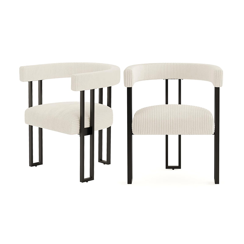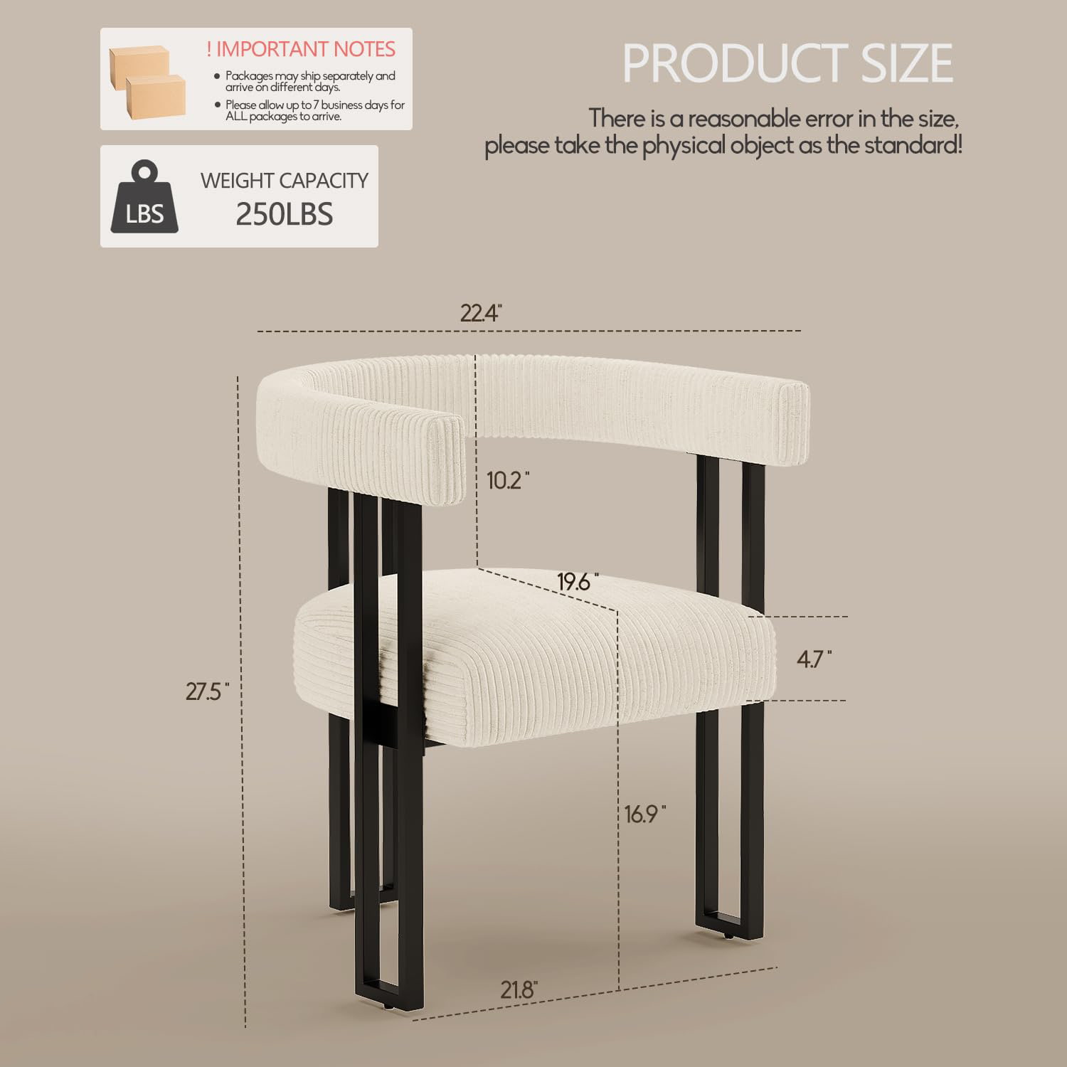 เก้าอี้รับประทานอาหาร Boucle, เก้าอี้ห้องรับประทานอาหารหุ้มผ้าลูกฟูกสีขาวพร้อมขาโลหะ, เก้าอี้สำเนียงสมัยใหม่ในยุคกลาง