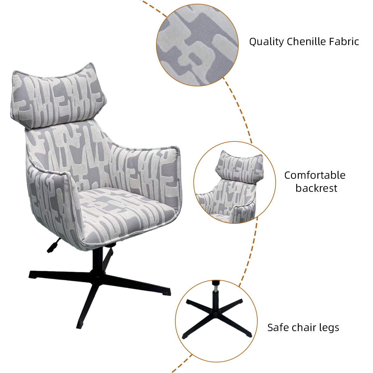 อาร์มแชร์แบบหมุนปรับได้ของเราได้รับการออกแบบมาเพื่อการตกแต่งภายในที่ทันสมัย โดยผสมผสานความสะดวกสบายตามหลักสรีรศาสตร์ ฐานโลหะที่ทนทาน และเบาะหุ้มแบบ Chenille ระดับไฮเอนด์ เหมาะสำหรับห้องนั่งเล่น สำนักงาน โรงแรม และเลานจ์ โดยมีทั้งประโยชน์ใช้สอยและความสวยงามที่ประณีต